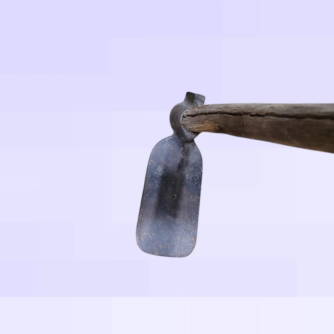 Originalmente utilizada para labrar la tierra y preparar el suelo para la siembra, esta azada es un testimonio de las prácticas agrícolas tradicionales. Aunque conserva su funcionalidad, también es ideal como pieza decorativa en jardines o espacios que buscan un toque vintage y auténtico.