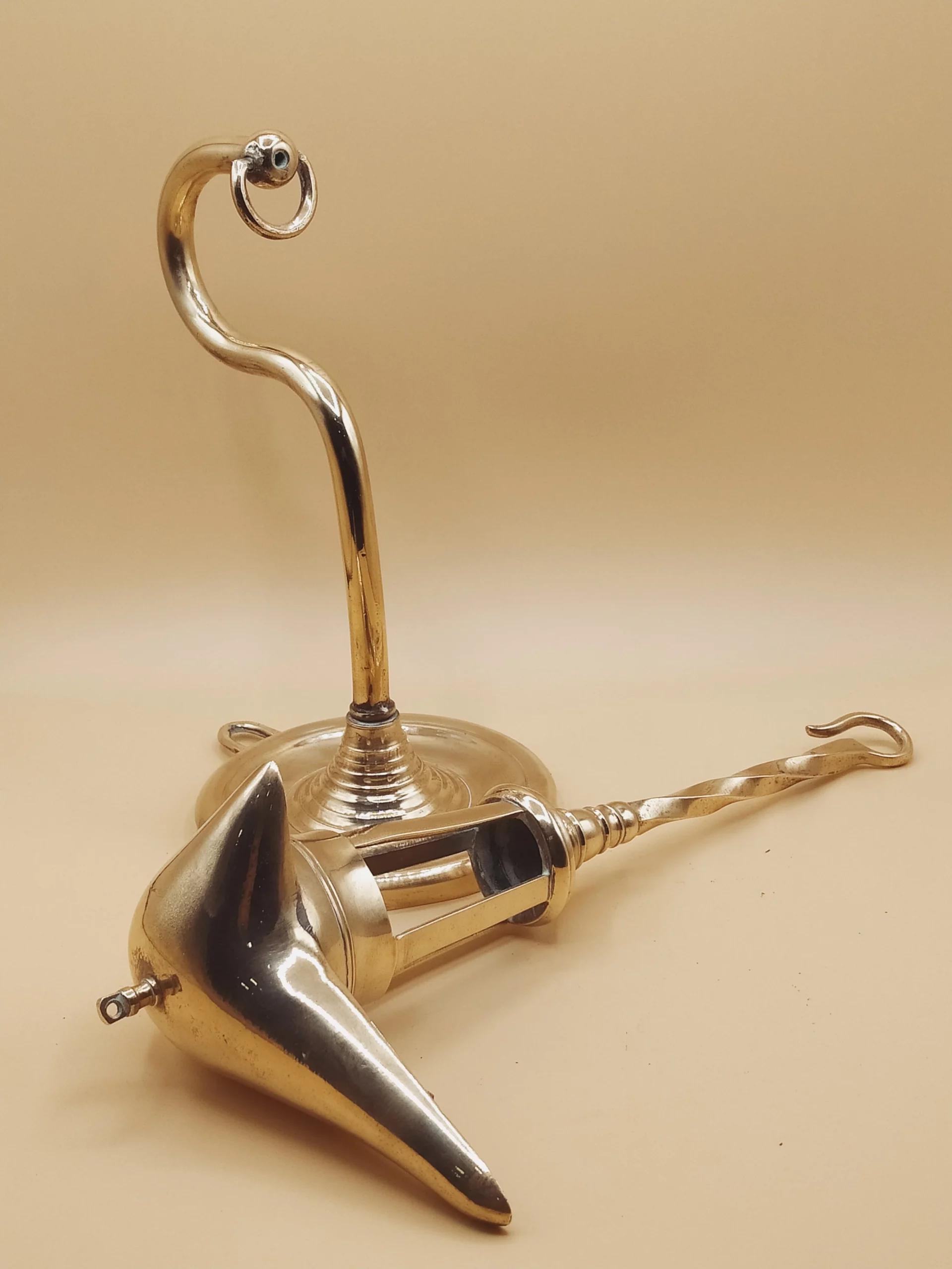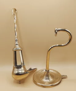 Añade un toque de historia y elegancia a tu hogar con este candil del siglo XIX, una lámpara de aceite en metal con detalles de bronce en el pico, también conocida como “periquito”. Esta pieza única, de 50 x 20 cm, no solo destaca por su belleza y autenticidad, sino también por su potencial funcional, ya que ofrecemos la posibilidad de electrificarla si lo deseas. Con un diseño clásico que ha iluminado muchos hogares durante décadas, este candil es perfecto para quienes aprecian las antigüedades de gran calidad.
