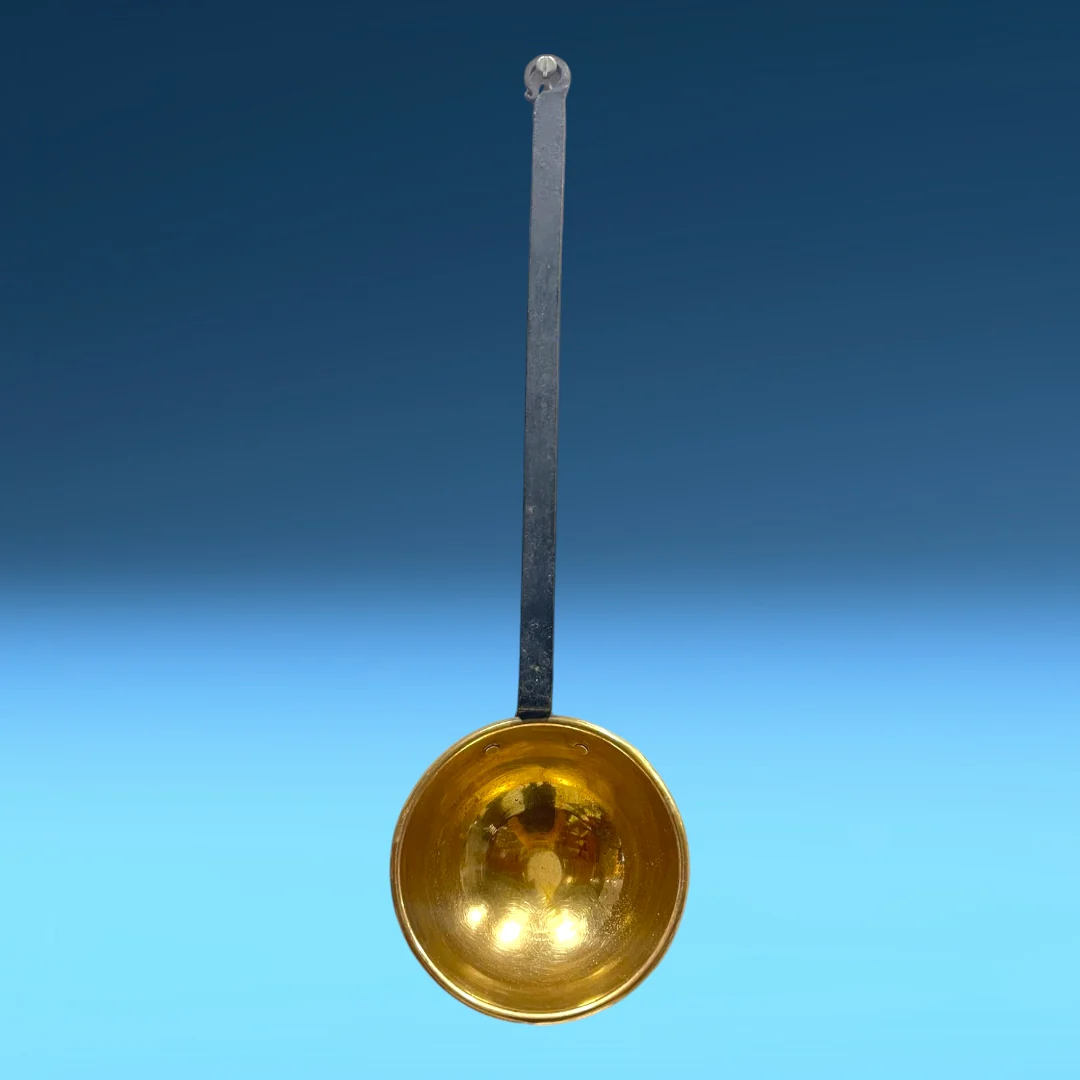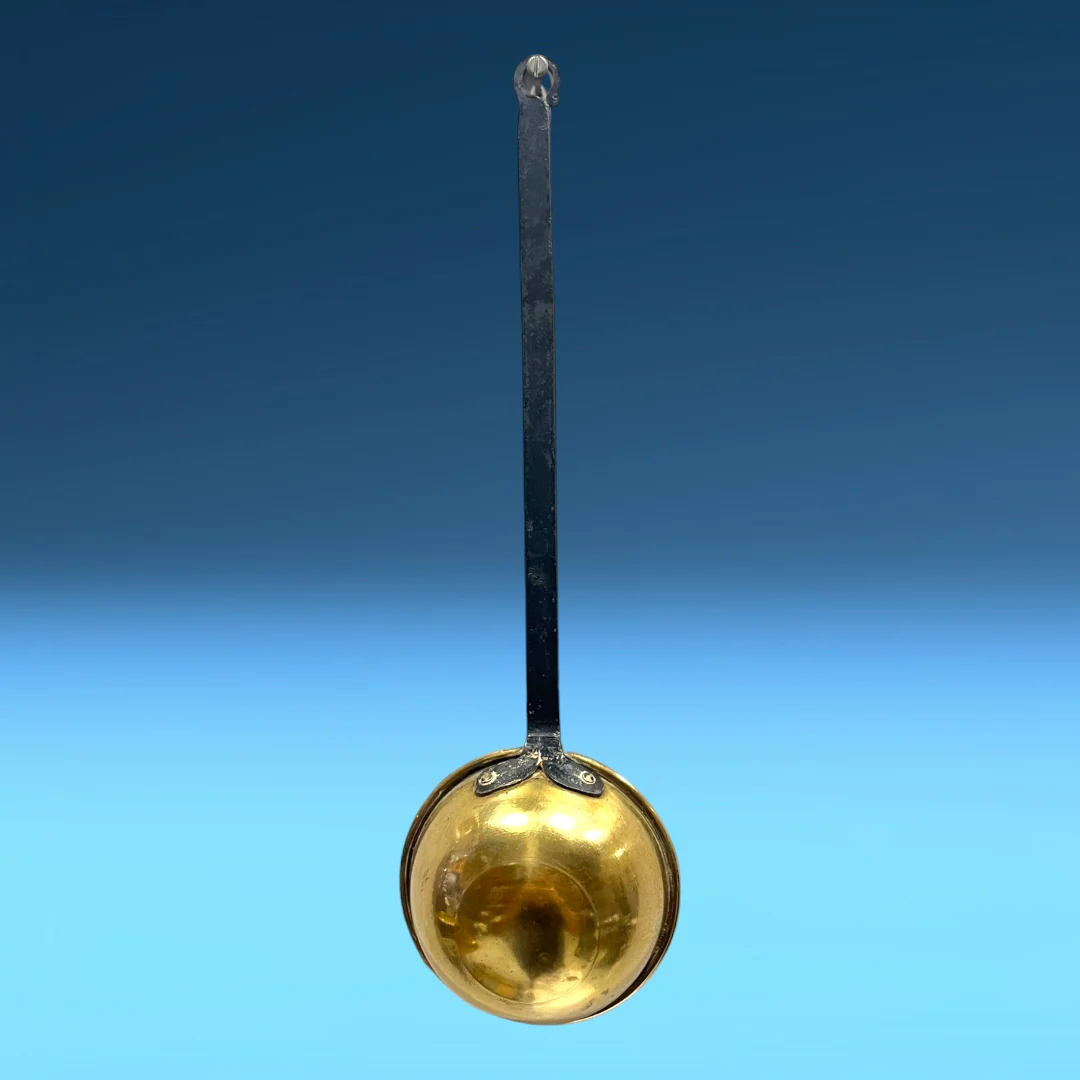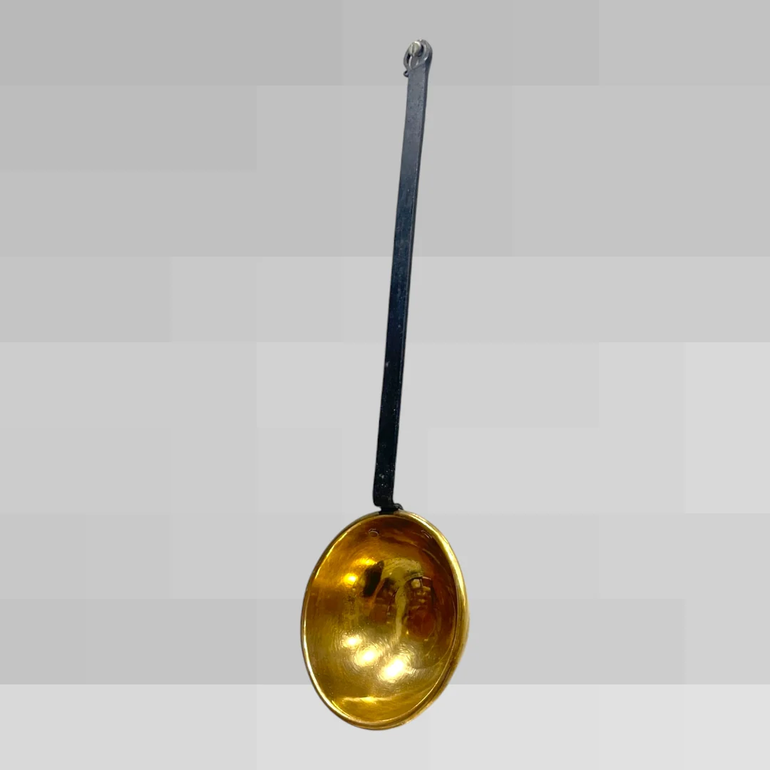 Cazo antiguo de metal con cabezal brillante funcional y decorativo