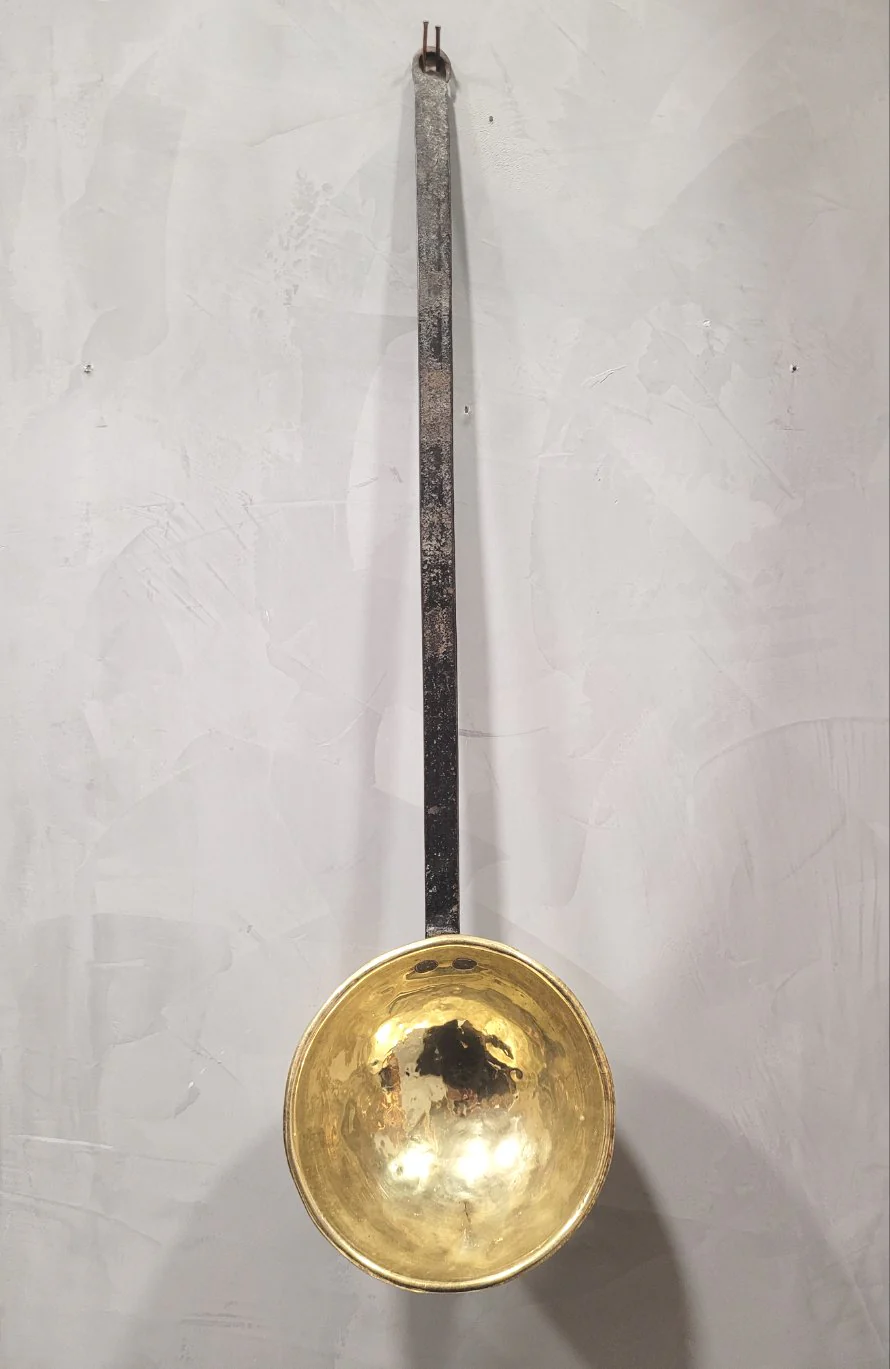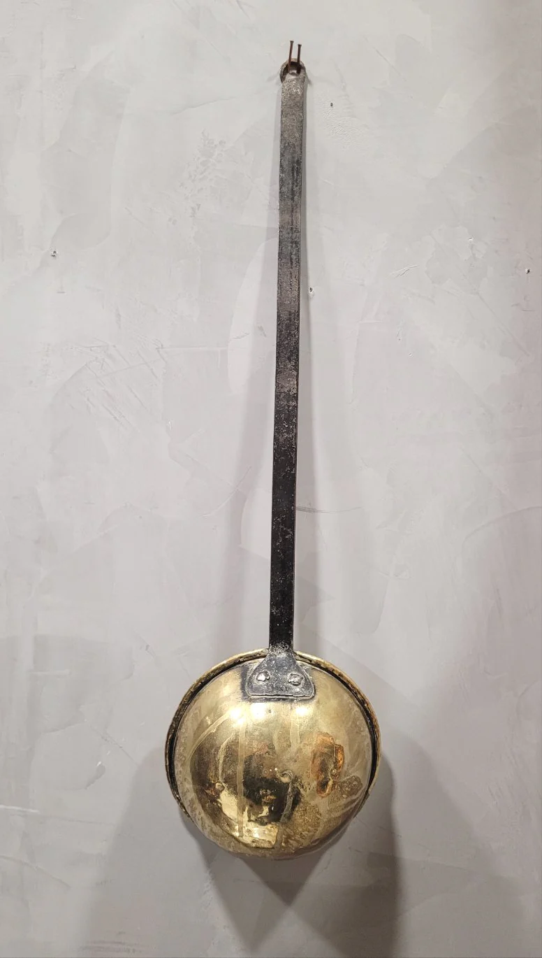 Este antiguo cazo de cocina de metal con mango de hierro remachado es una pieza única que añade un toque auténtico y rústico a cualquier cocina. Ideal para los amantes de la decoración vintage y rústica, este cazo es perfecto para lucir en fogones de cocinas de estilo antiguo o, si lo prefieres, puede ser utilizado en su función original. Su diseño robusto y detallado lo convierte en un artículo no solo decorativo, sino también funcional. Excelentes calidades garantizan su durabilidad a lo largo del tiempo.