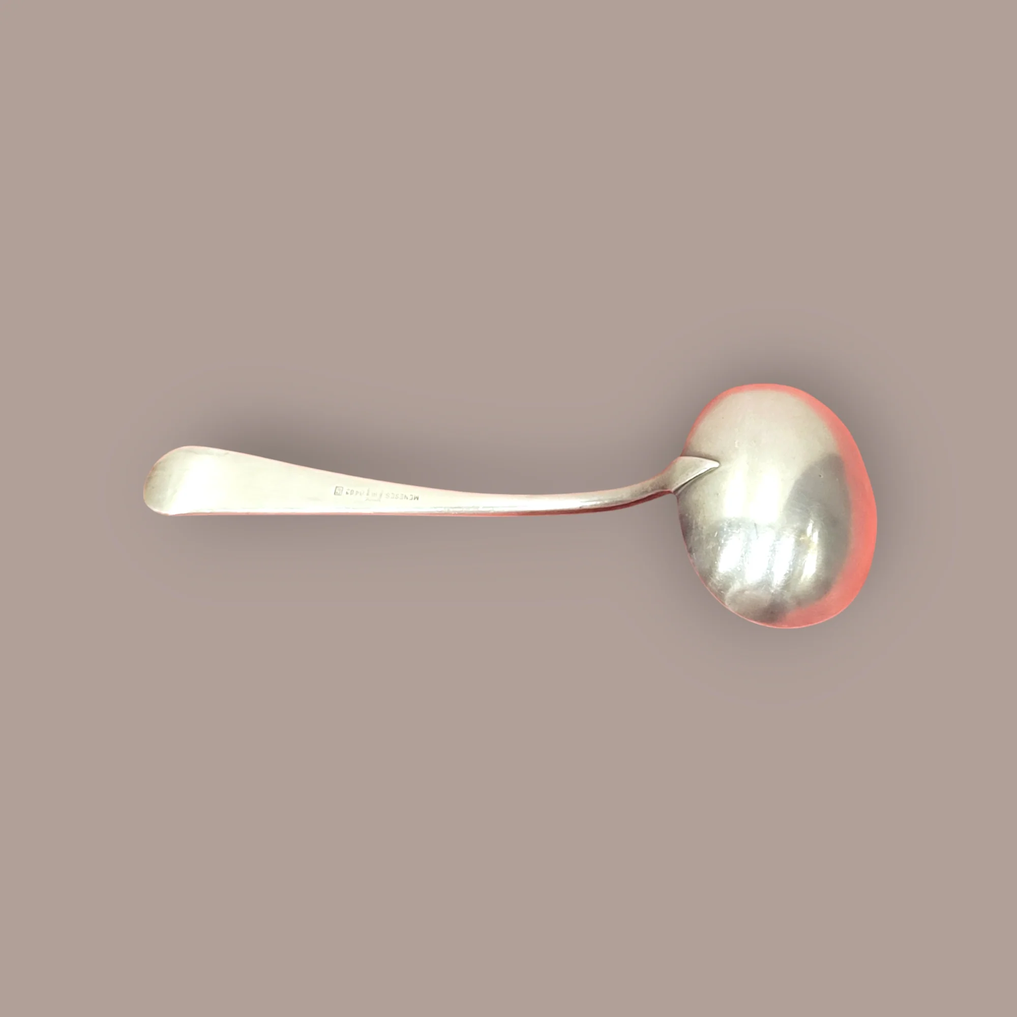 Este cazo de salsera antiguo es una pieza única, elaborada en metal plateado con un hermoso grabado artesanal en el mango. Perfecto para servir salsas en eventos elegantes o cenas especiales, este artículo combina funcionalidad con un estilo clásico y sofisticado. Ideal para coleccionistas o amantes de la vajilla vintage, es un elemento que aporta distinción a cualquier mesa. Su diseño atemporal lo hace perfecto para ocasiones especiales y el uso diario.