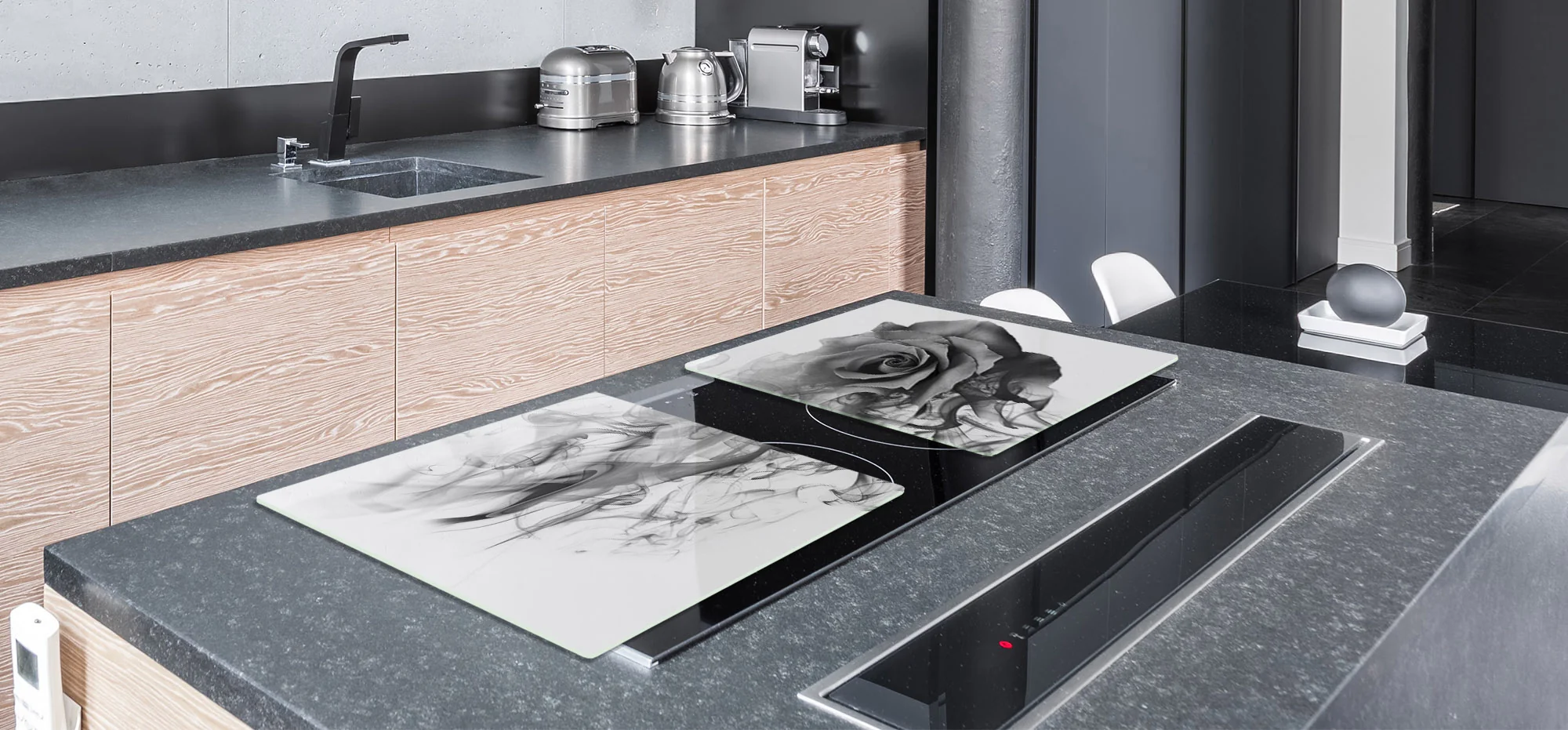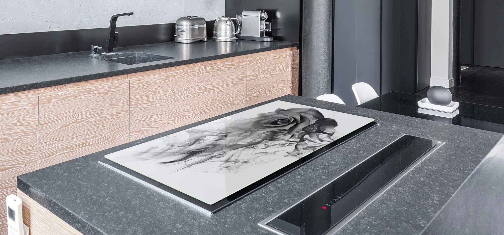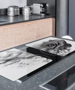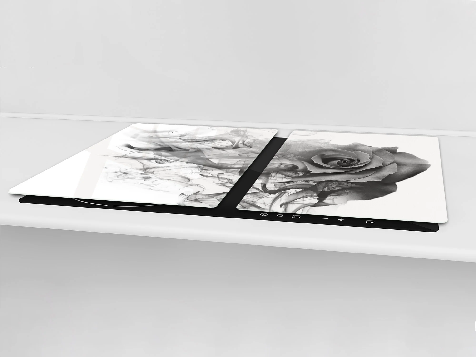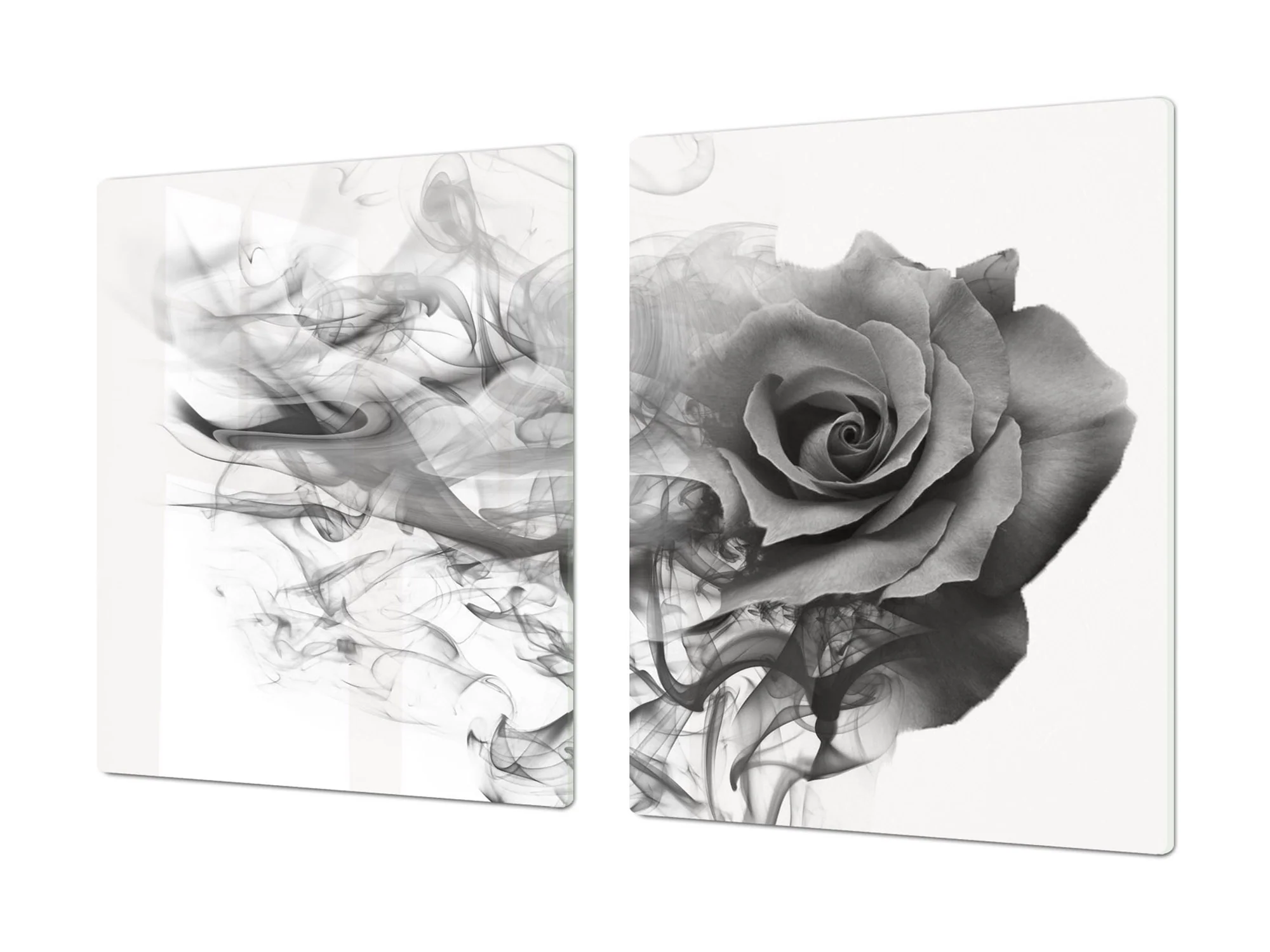 Induction Cooktop Cover – Glass Cutting Board- Flower series DD06B Gray rose