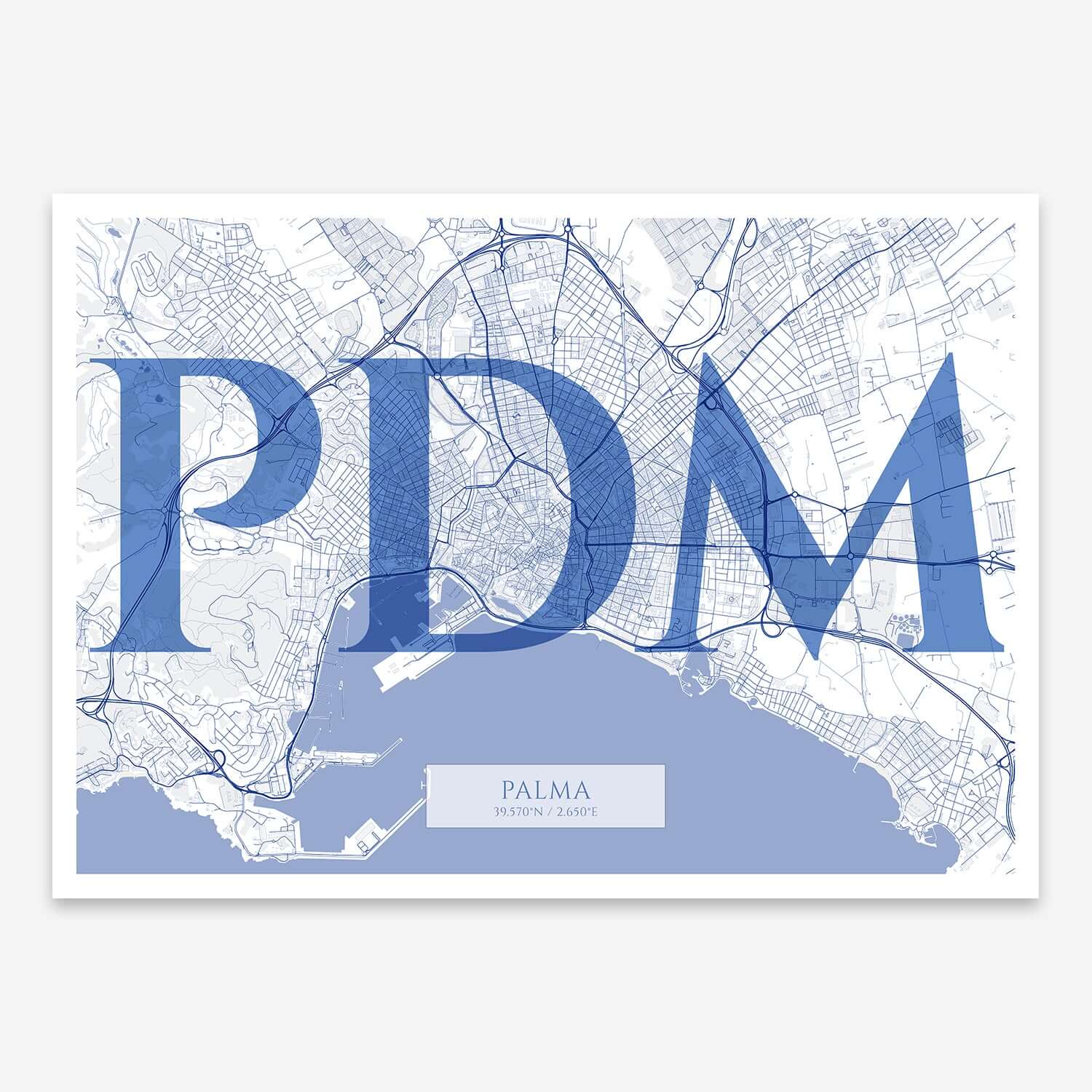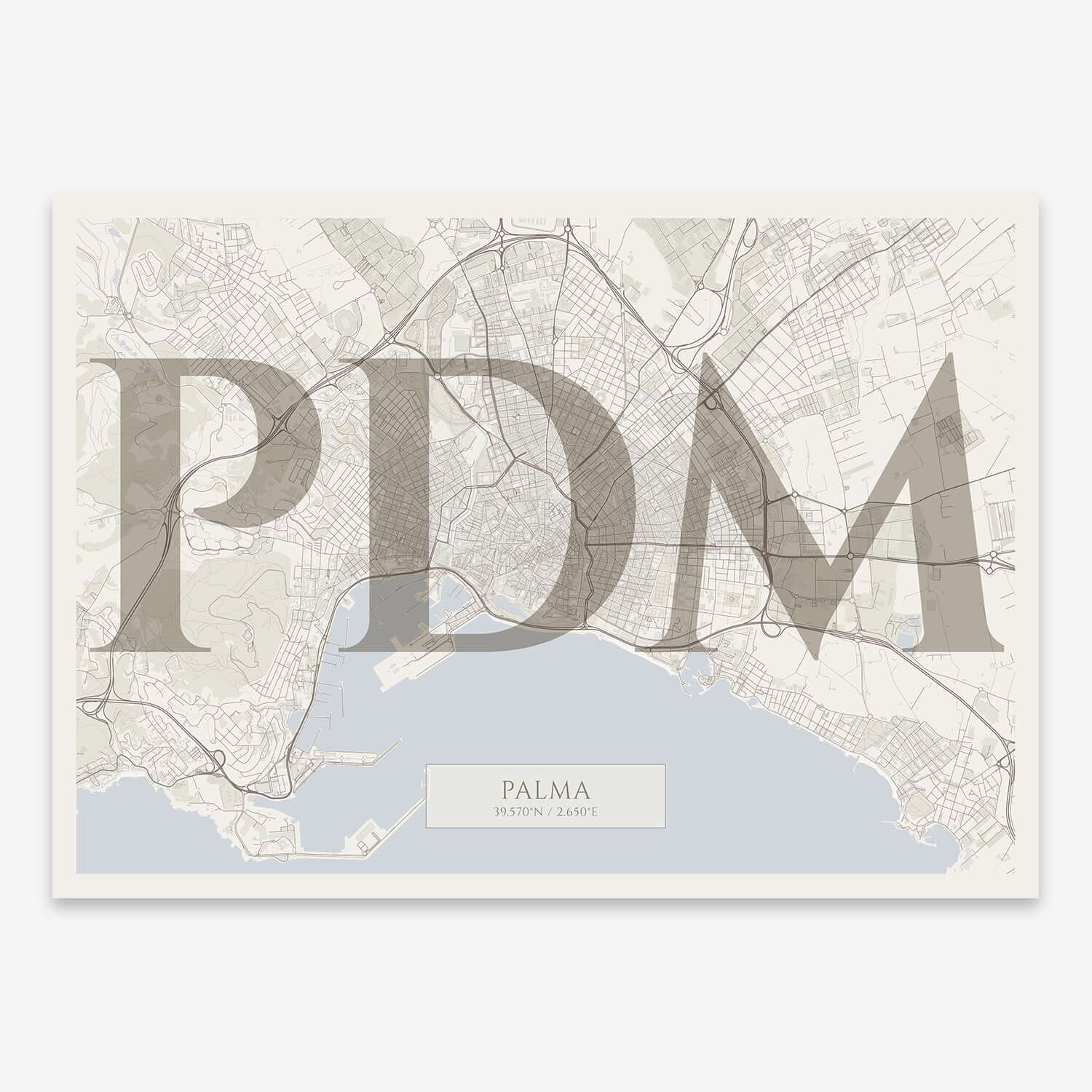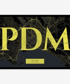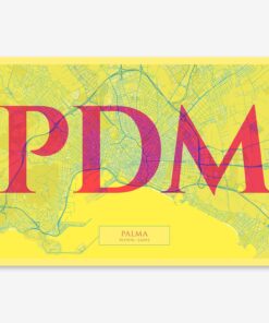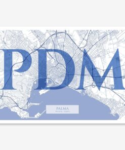 Personalize this Palma Poster V06, designed with a composition of the map of Palma and the letters PDM or purchase it with this graphic design ready to add to your cart. A special gift to decorate the walls of lovers of graphic design and typography.