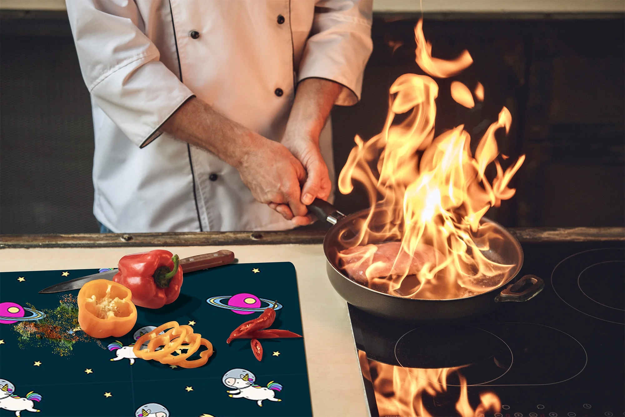 – TEMPERED GLASS Kitchen Board both highly functional and beautiful is a must-have in every modern home; its colorful, artistic designs bring a sleek and contemporary style to your kitchen or dining area